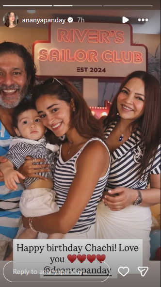 अहान की कजिन सिस्टर और बॉलीवुड एक्ट्रेस अनन्या पांडे ने भी अपनी आंटी Deanne Panday के बर्थडे पर एक प्यारी सी तस्वीर शेयर करते हुए उन्हें विश किया है। अनन्या ने जो तस्वीर शेयर की है, उसमें उनके पिता चंकी पांडे और क्यूट से रिवर भी नजर आ रहे है। इस तस्वीर को शेयर करते हुए अनन्या ने लिखा, “हैप्पी बर्थडे चाची। लव यू।”
